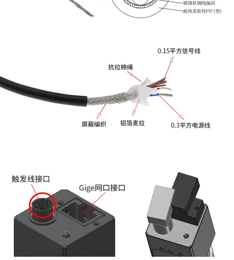 电源触发线工业相机电源线hr10a-7p-6s 6芯3m5m柔性供电I/O线16芯 品牌 | BOHAI | ||