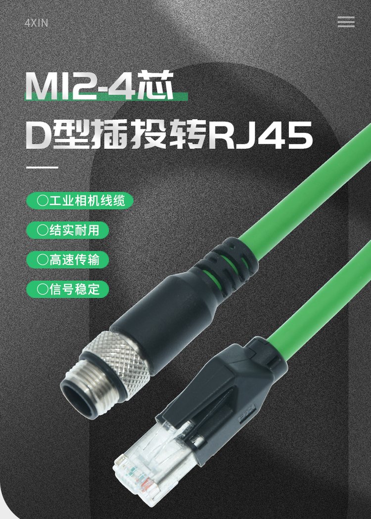 M12转RJ45相机以太网线D型4芯航空插头数据传输防水连接线定制