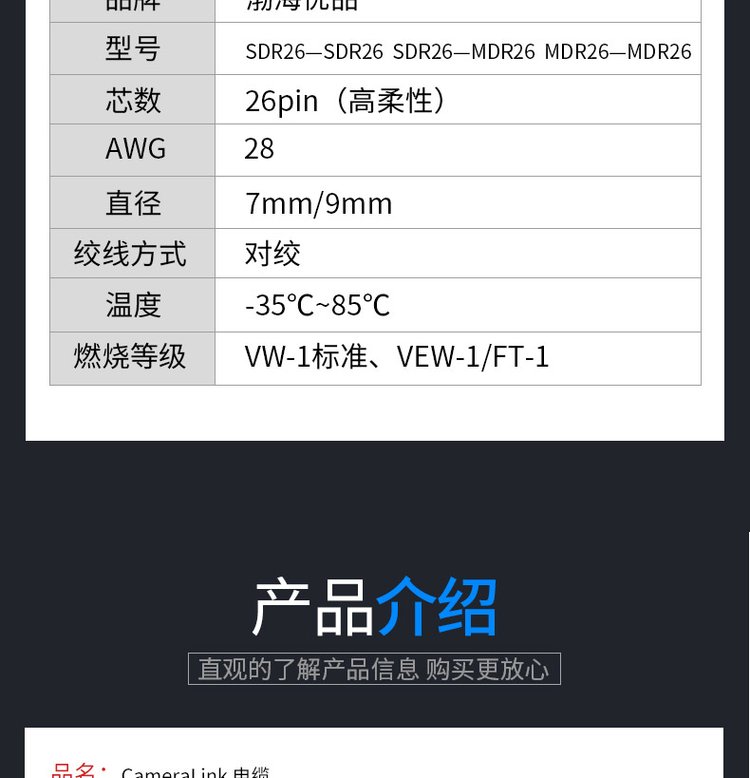 工业相机cameralink线缆高柔拖链供电信号MDR26转SDR26高速数据线