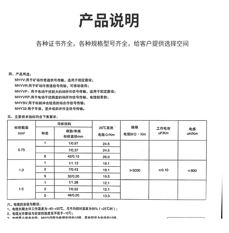 用途 | 矿用通信电缆 | ||