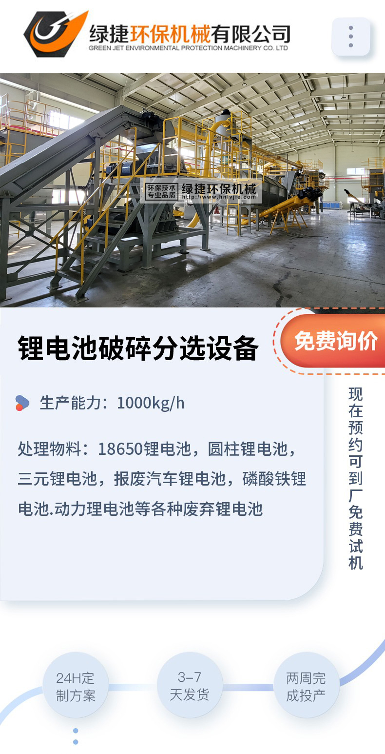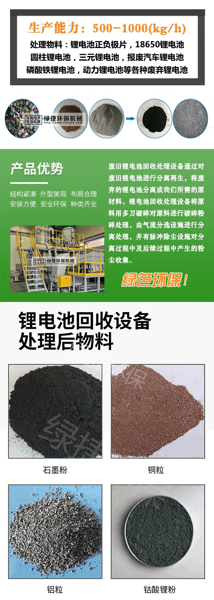 处理范围 | 不同规格的废旧锂电池及极片 | ||