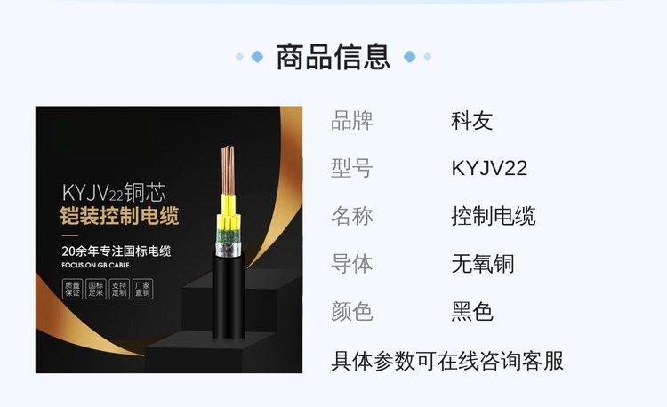 国标KYJV22铠装控制电缆多规格可选偏心率低更安全