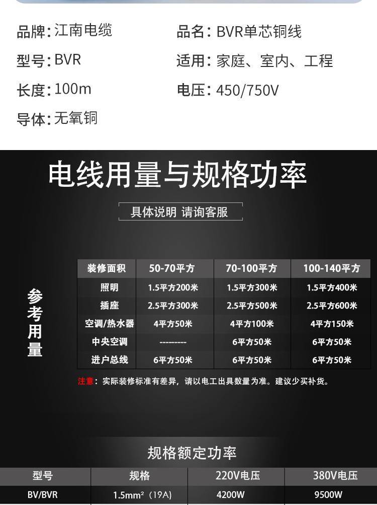 江南电线国标BVR纯铜芯多股软电线2.546平方家装家用单芯电线