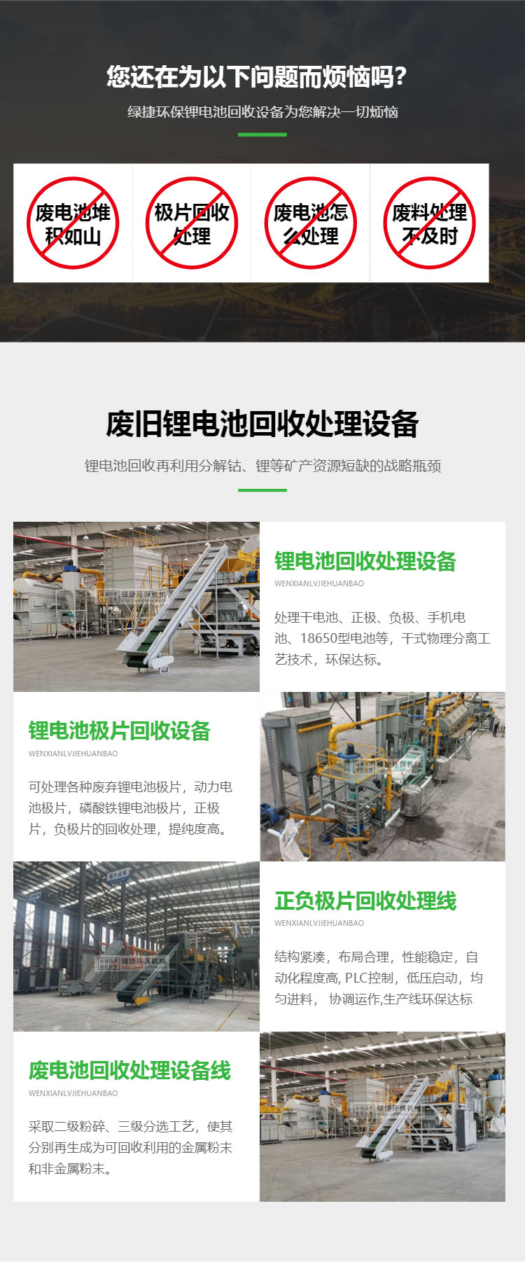 绿捷环保新能源锂电池回收处理设备铜铝黑粉分离效率高