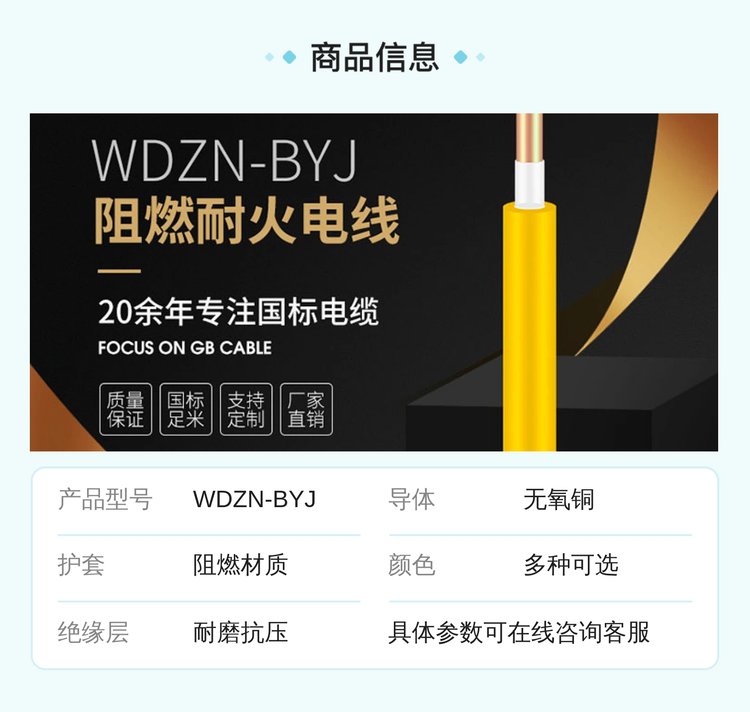 WDZN-BYJ阻燃耐火电线铜芯单股家装护套线支持定制