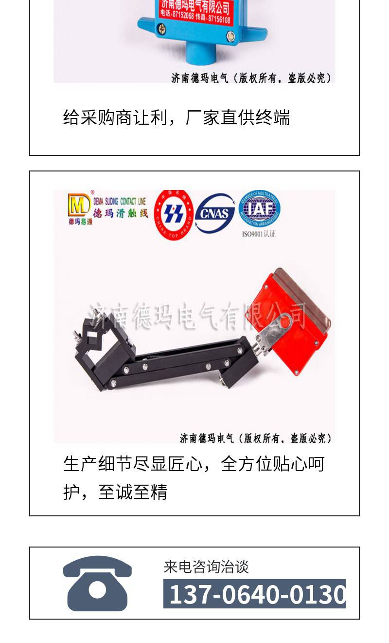 滑触线集电器250A500A滑线受电器寿命长石墨合金德玛电气