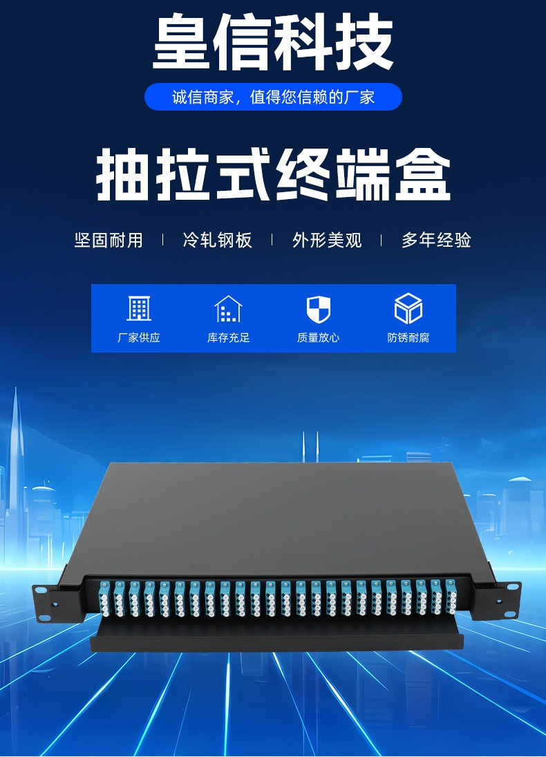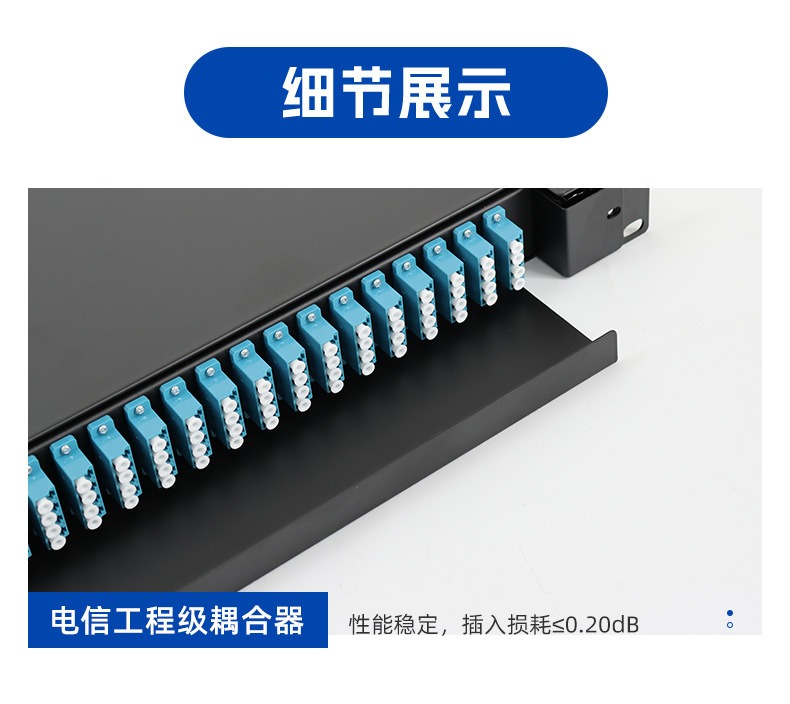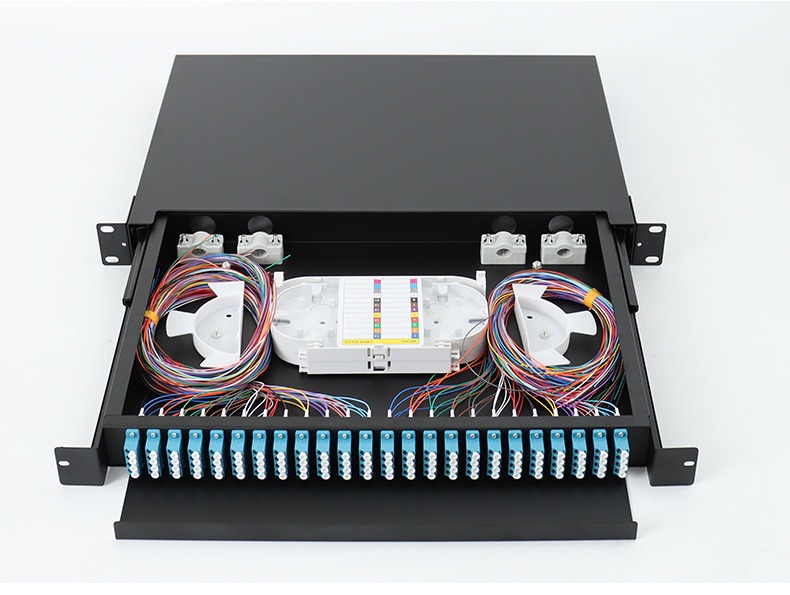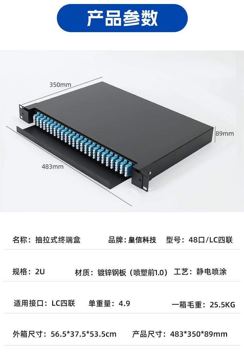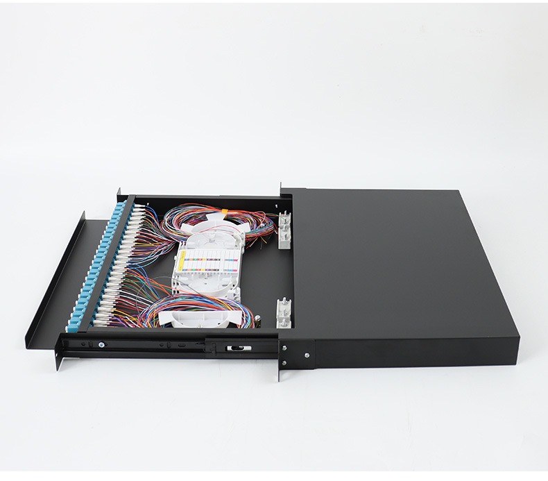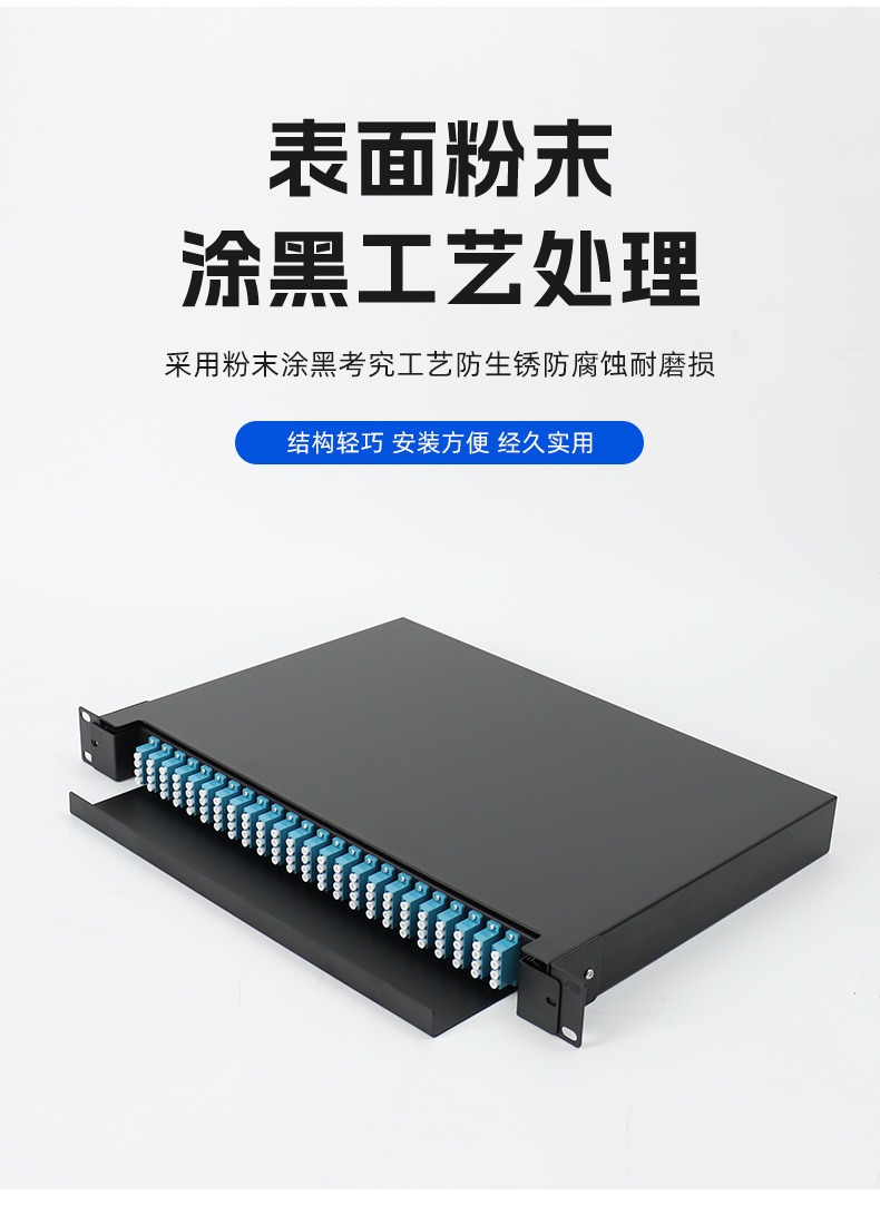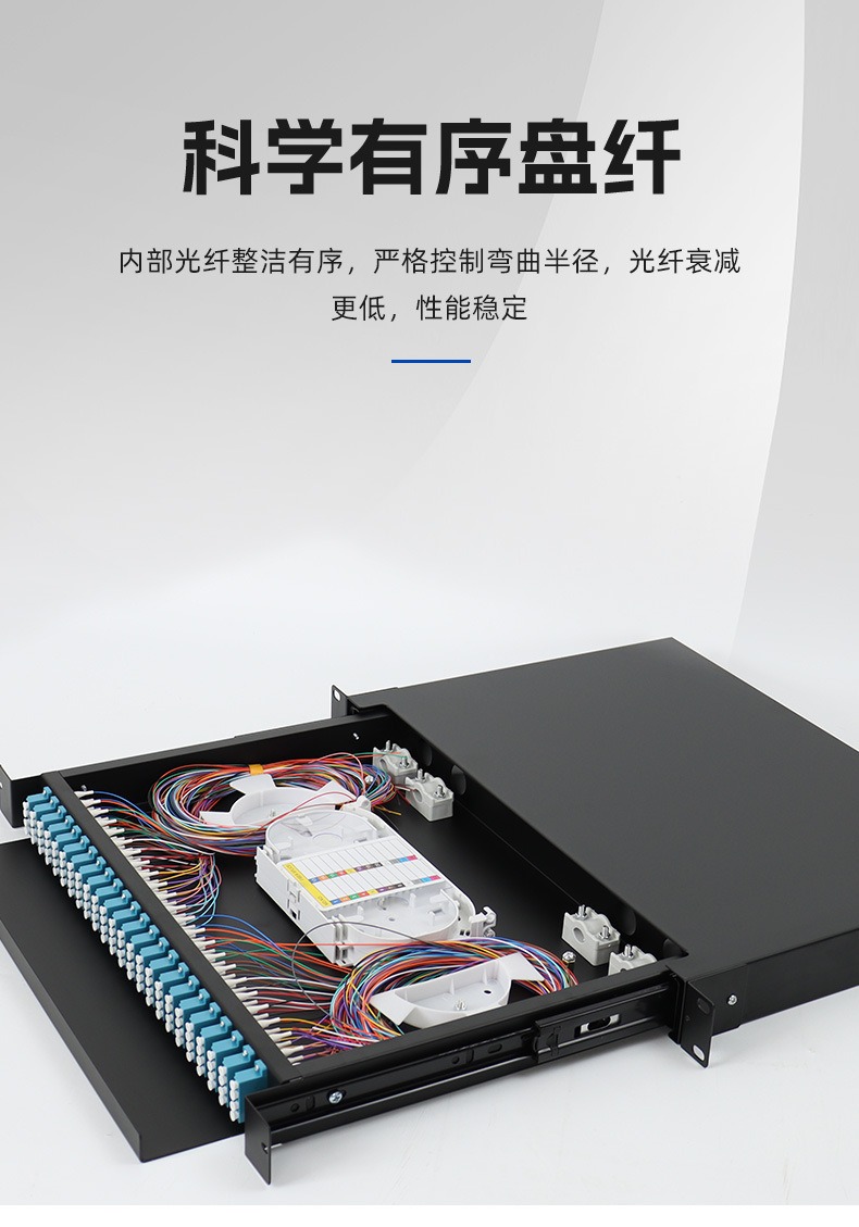 1U96芯LC四联抽拉式光缆终端盒加厚24口96芯光纤配线架LC单模
