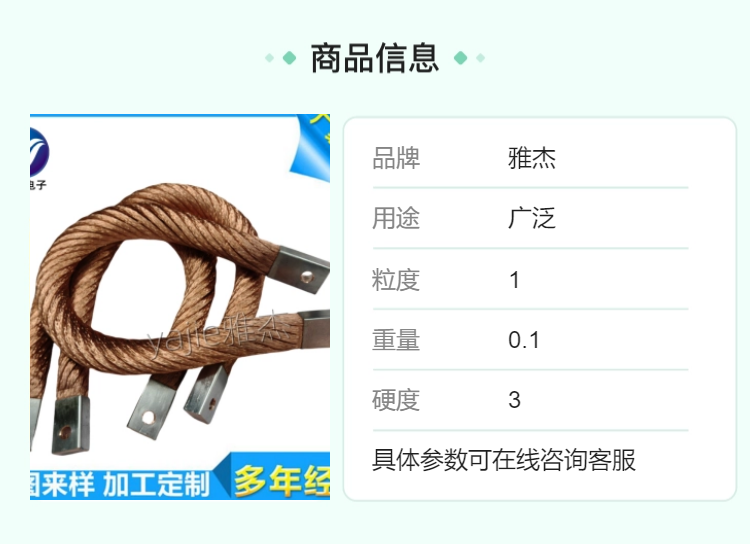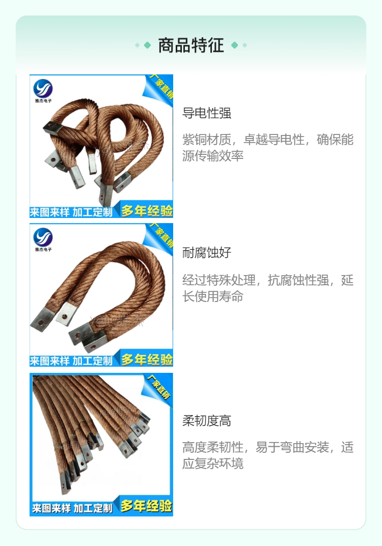 雅杰雅杰TJR-15裸铜绞线圆形紫铜线软连接来图来样定制