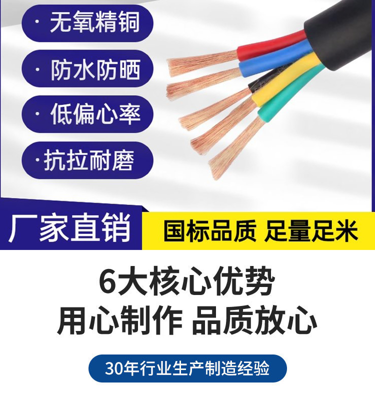 YCW黑色圆形铜芯橡套电缆通用橡胶电缆可来电定制
