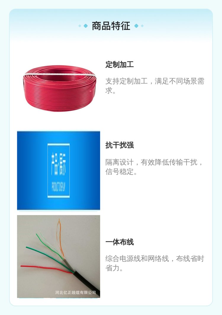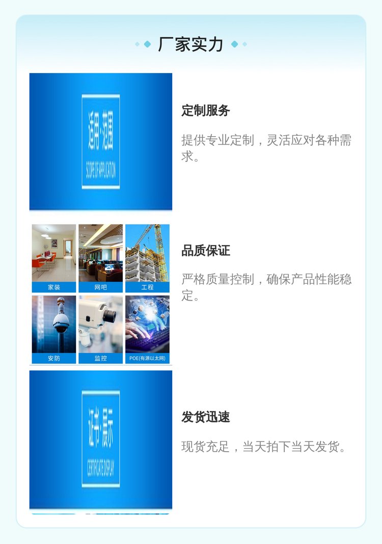 产品特色 | 支持定制加工,适用于家装网吧工程安防监控 | ||