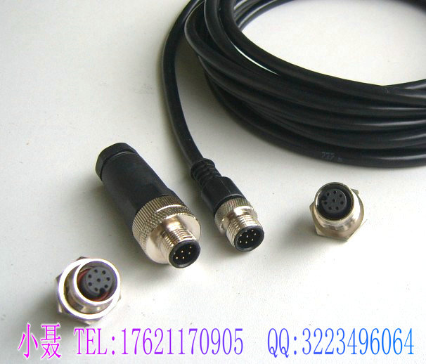用于传感器、I/O连接,标准M12螺纹连接,针端接口,3芯,4芯,5芯,6芯,9芯,12芯可选,IP67防护等级。