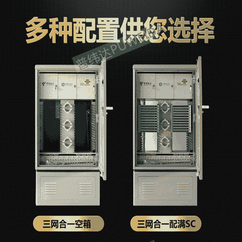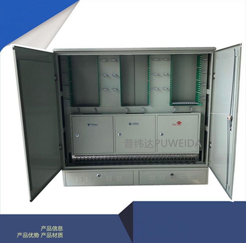 720芯共建共享光缆交接箱资料介绍: 三网合一光缆交接箱是用于光纤接入网(电信网,移动网,联通网)三网骨干光缆与FTTH小区配线光缆节点处的接口设备,可以完成大容量光纤的熔接,终端存储以及调度等功用。该商品的使用,减少了三网的重复线路建造,精简线路,美化环境。 箱体选用不锈钢材料制作,抗腐蚀耐老化,使用寿命超过20年。 壳体门框四周选用凹槽构造,硅橡胶密封 ,密封功用到达GB4208--1993中IP 级请求。 壳体门锁选用三面齿轮推杆组织,是开启和封闭箱门时更显轻松。 箱体内部夹以隔热材料,能有用避免箱内凝露的产生。 选用12芯熔配一体化模块,大起伏利用有用空间,大容量为720芯。 卡接式装置FC,SC适配器。 前后设通道,可方便跳线灵敏跳接 12芯熔配一体化模块可抽出至箱外,全部正面操作。 有牢靠的光缆固定,开剥和接地装置。 各部件方位和按排,保证光缆在任何方位时曲折半径大于40MM。 光缆进壳体接口处,打破传统方法防水接头处理光缆密封问题。 720芯三网合一光缆光交箱主要特点: ① 采用免跳纤方式,单面操作,箱体上方为各运营商独立仓(主干、光分区),中间主体部分为配线区(用户公共区)、箱体下方为外缆引入区; ② 箱体外形尺寸:144芯-432芯:1470×750×320-576芯-864芯1470*750*540(高× 宽× 深,mm); ③ 局端引入光缆,每个运营商设计1 个12 芯熔配一体化托盘; ④ 用户公共区共设计144芯288芯432 芯576芯648芯720芯864芯; ⑤ 光分路器区采用盒式光分路器,每个运营商设计16 个光分插槽,可安装1/2 分16、1/2 分32、1/2 分64 的盒式光分器。