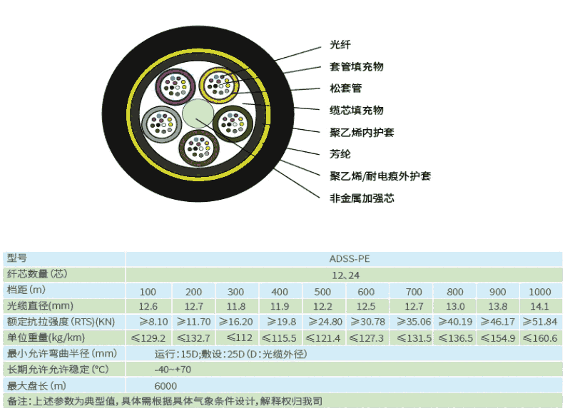 3.精心设计芳纶用量和完善的绞合工艺以满足不同跨距的应用要求。