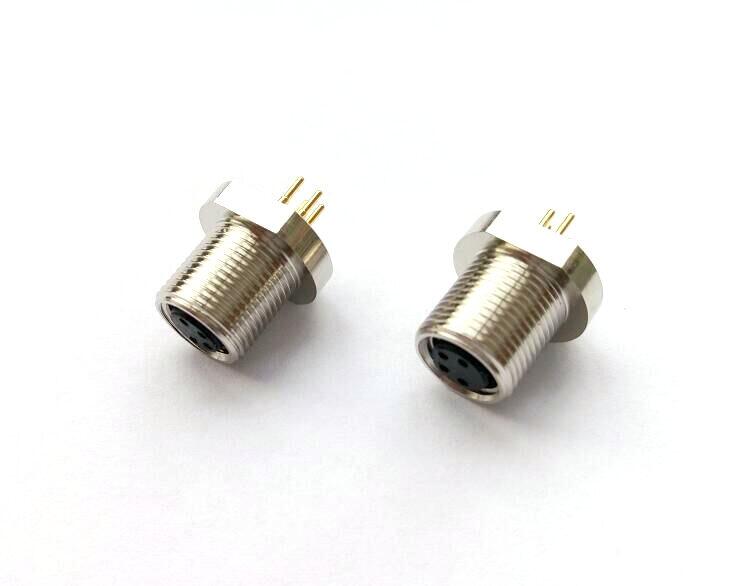 M8-4孔板前安装插座,安装螺纹M11*1,焊杯脚订货型号:KYF8K4Z-M11*1-M-Q