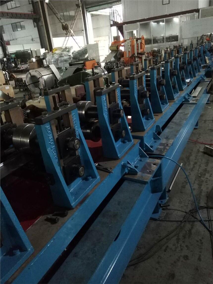 This production line consists of de-coiler,punching,roll forming,welding,cutting,electric control system,etc.The tensile strength of profile is 400∽590 MPa,yeild strength≥780MPa,the material is high tensile strength steel