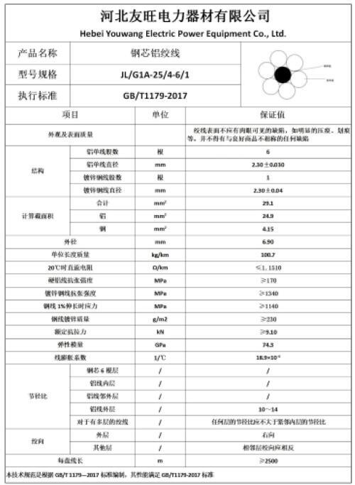 四、宜昌钢芯铝绞线LGJ25/4价格如何产品基本参数及样本图片: