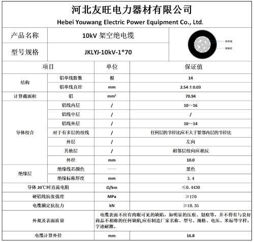 四、厂家直销架空绝缘线JKLYJ70河北国标导线厂家报价产品参数及样本图片: