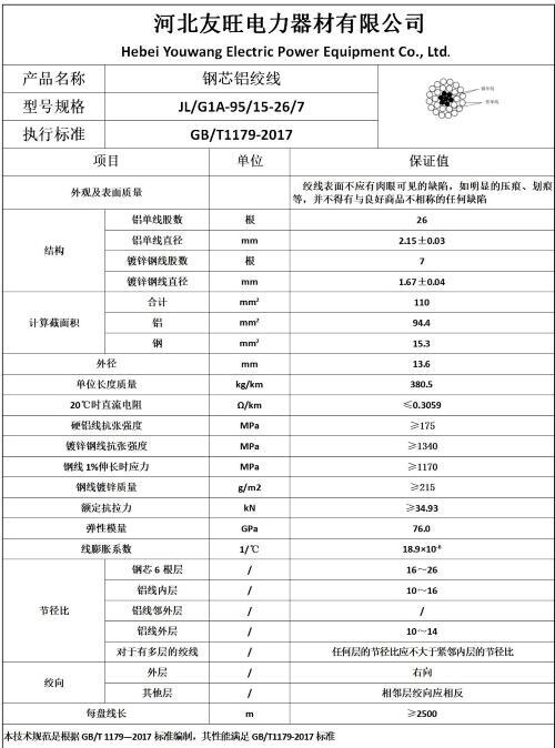 四、JL/G1A-95/15改造专用线厂家直销产品基本参数及样本图片: