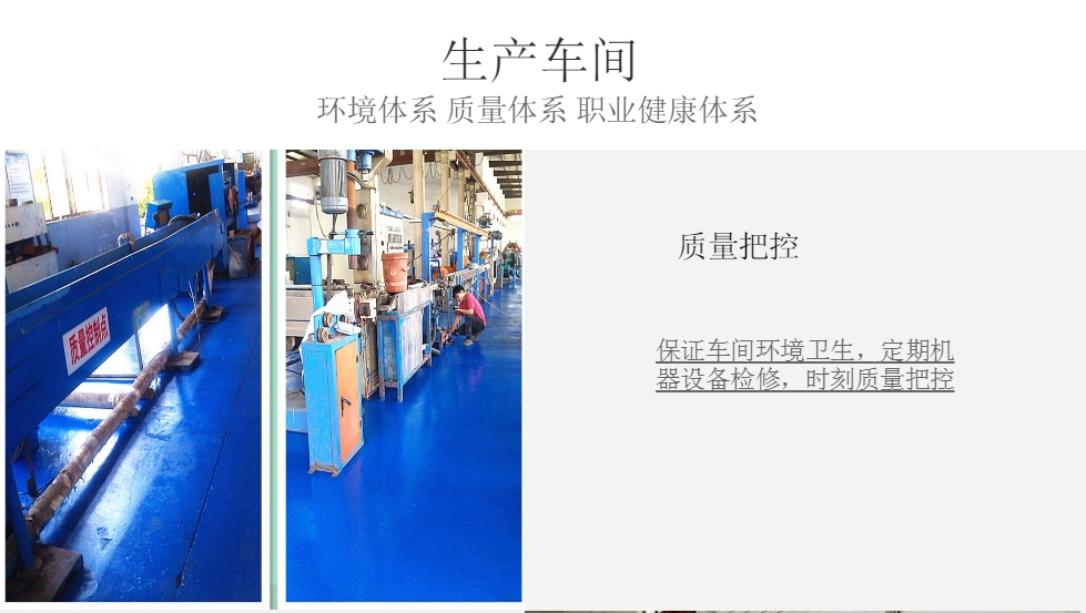 我公司生产各种电线电缆料,护套料,聚氯料,料,乙级料,不转芯料,护套料,阻燃料,低烟无卤料我才并进行拔丝加工,铜丝、铝丝各种规格的型号丝。生产电线主要有:塑铜线(固定布电线、阻燃塑铜线、耐火塑铜线、低烟无卤塑铜线)BV、ZRBV、NHBV、WDZBN-BV,塑铜软线(阻燃塑铜软线、耐火塑铜软线)ZRBVR、NHBVR.护套线(软护套线、硬护套线,黑护套线、白护套线、阻燃护套线、耐火护套线、低烟无卤护套线)RV、RVV、ZR-RVV、NHRVV、RVVB、BVVB.双绞线(通常用于灯线、耐火双绞线、阻燃双绞线、屏蔽双绞线)RVS、NHRVS、ZRRVS。屏蔽线(软屏蔽线、硬屏蔽线、控制屏蔽线)RVVP、KVVP.平行线RVB,塑铝线BLV,耐候线BVV,地埋线等。