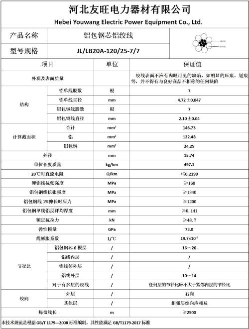 四、厂家直供铝包钢芯铝绞线JL/B20A-120/25直销产品参数及样本图片: