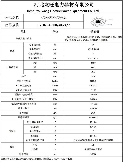 二、 产品执行标准:GB/T1179-2017 《圆线同心绞架空导线》;
