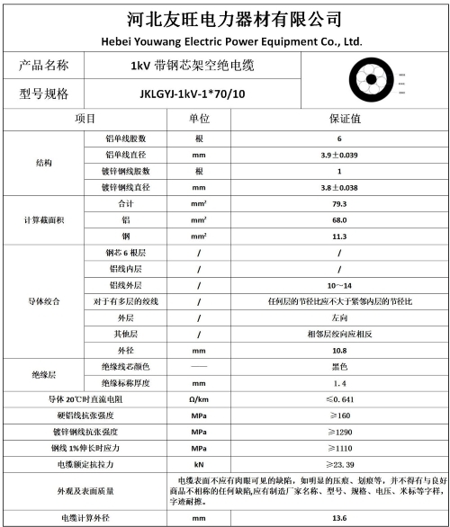 四、70/10架空绝缘线厂家直供价格产品参数及样本图片:
