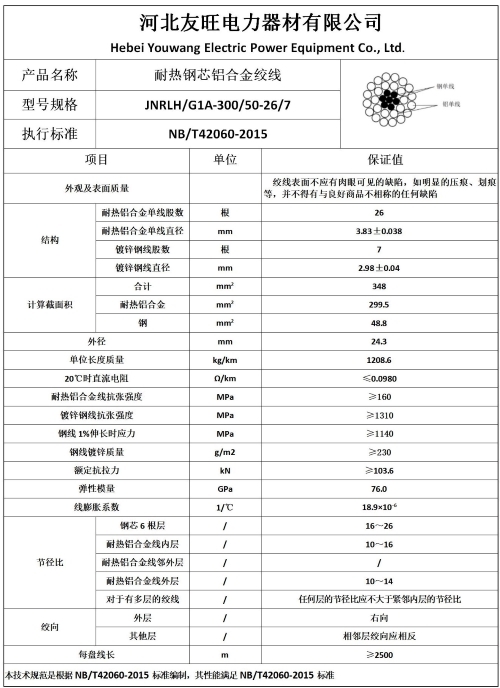 四、国标耐热钢芯铝合金导线生产厂家NRHLGJ300/50厂家价格产品基本参数及样本图片: