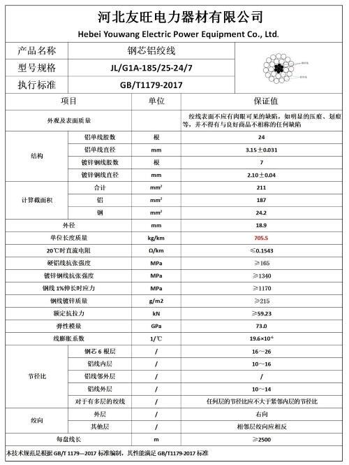 四、 海南JL/G1A185/25钢芯铝绞线厂家直销现货价格产品基本参数及样本图片: