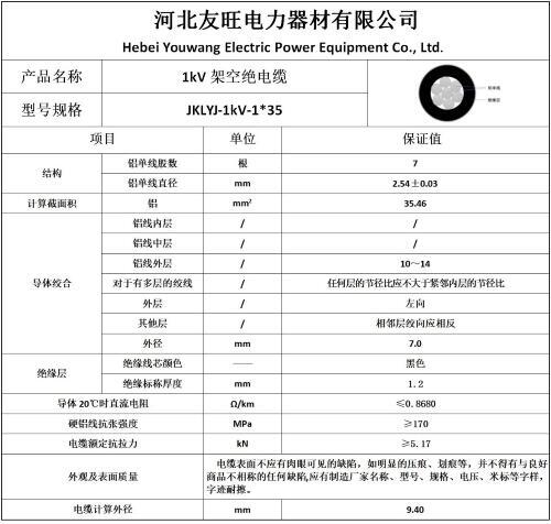 四、嘉兴国标导线厂家直销JKLYJ-1KV-35价格公道产品参数及样本图片: