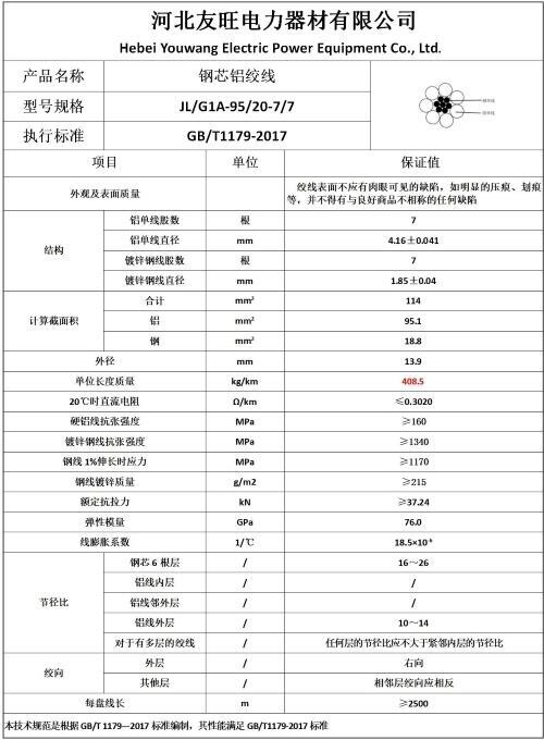 四、沧州电力金具厂家直销LGJ95/20钢芯铝绞线多少钱产品基本参数及样本图片: