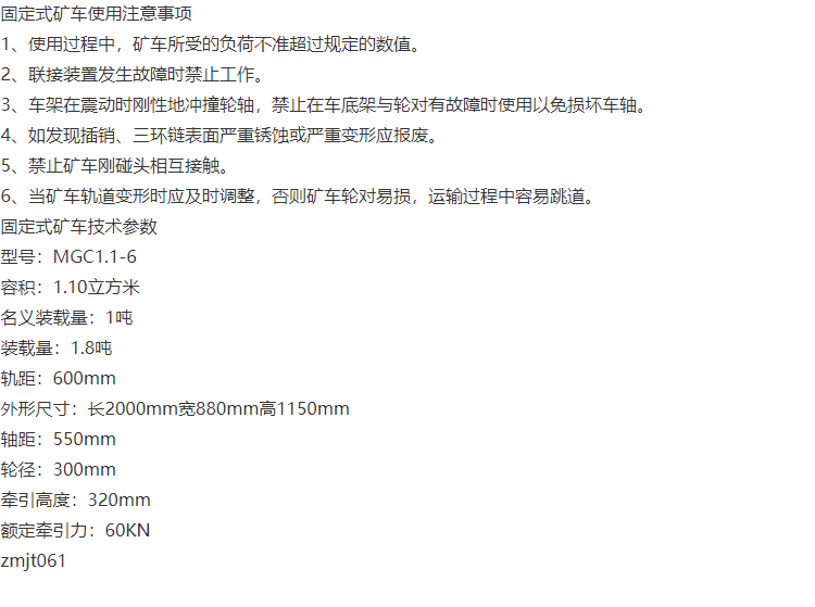规格 | 固定式矿车mm | ||