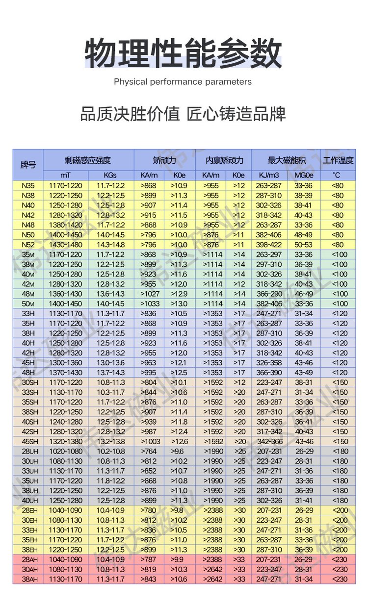 最大磁能积 | 263-287(KJ/m3) | ||