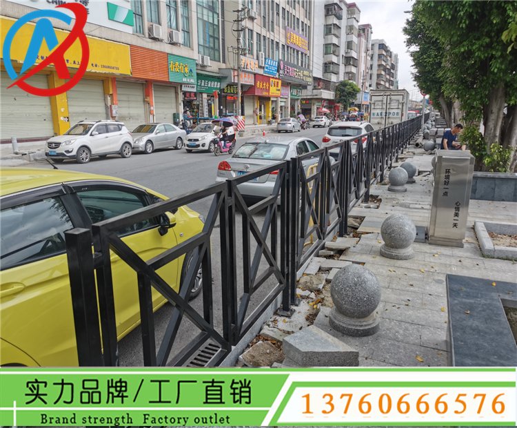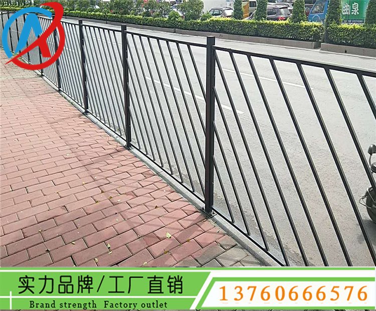花都市政道路护栏网图片 马路人行道防护栏杆 黑色铁艺栅栏