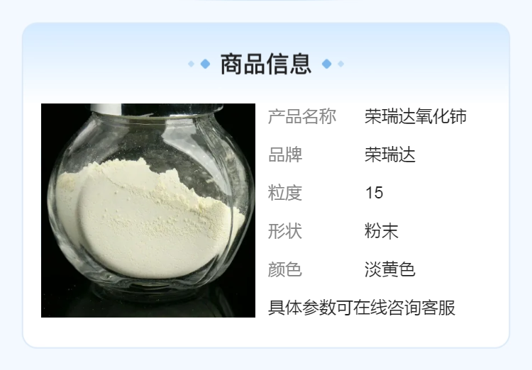 荣瑞达氧化铈高纯玻璃澄清剂生产厂家淡黄色颗粒快速发货