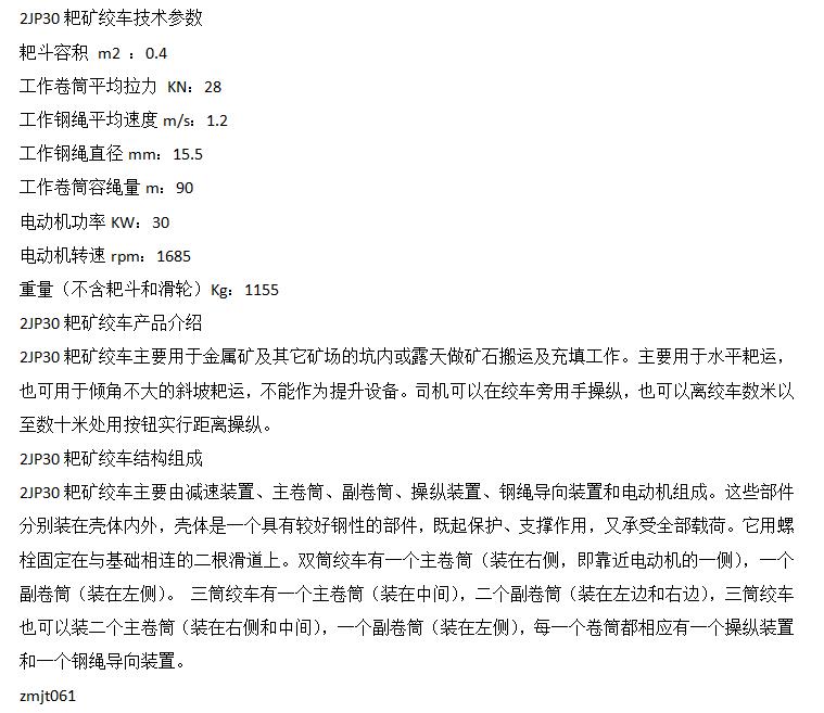 型号 | 2JP30耙矿绞车 | ||