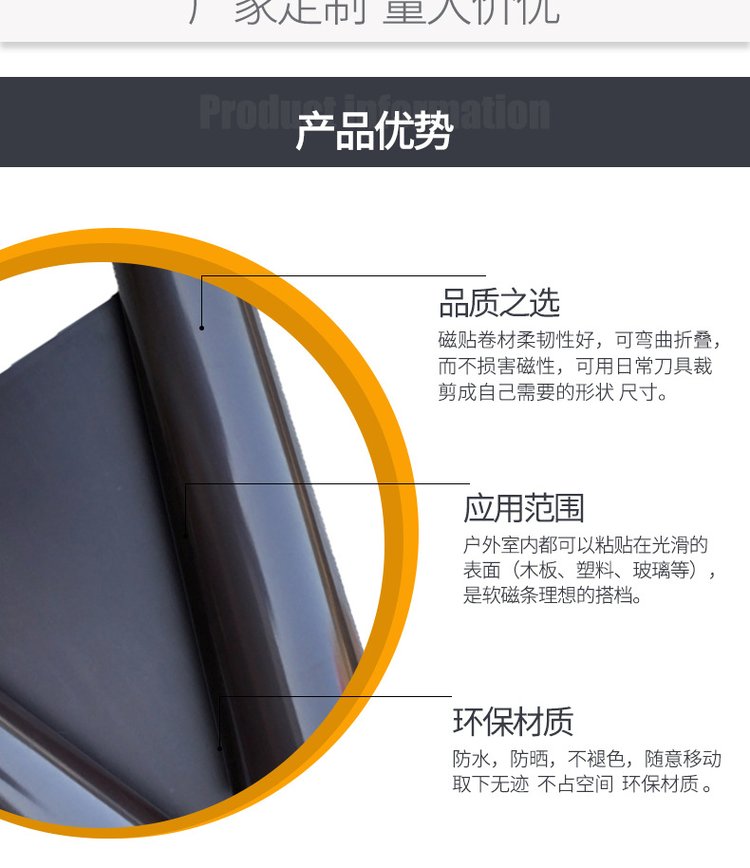 A3背胶彩印橡胶磁铁磁性抗干扰软磁片书签广告教学冰箱贴永磁材料