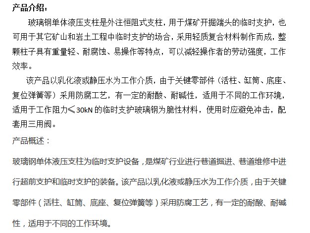 DW20-30/100B临时支护用单体液压支柱-玻璃钢单 体支柱 品牌国煤