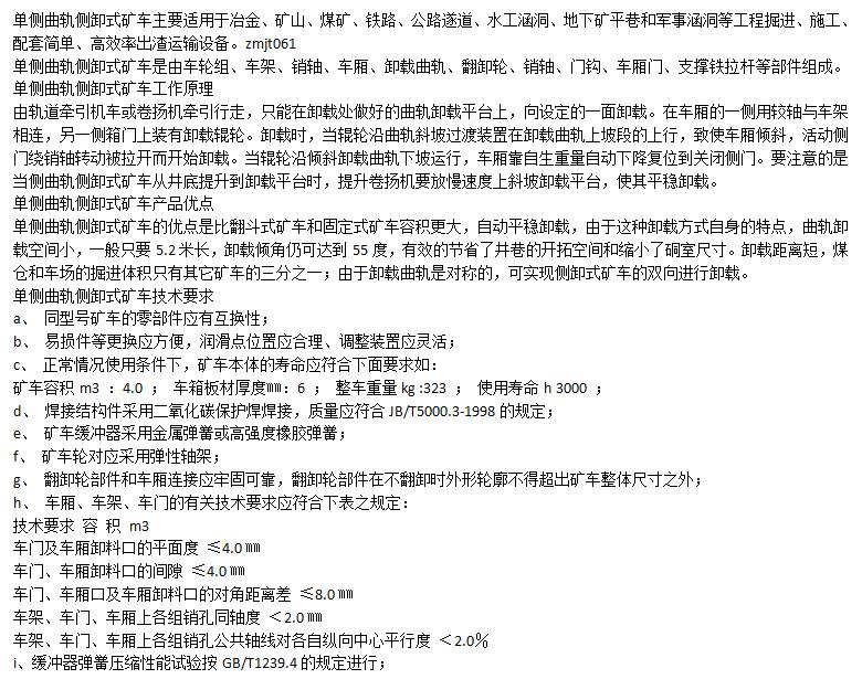 类型 | 单侧曲轨侧卸式矿车 | ||