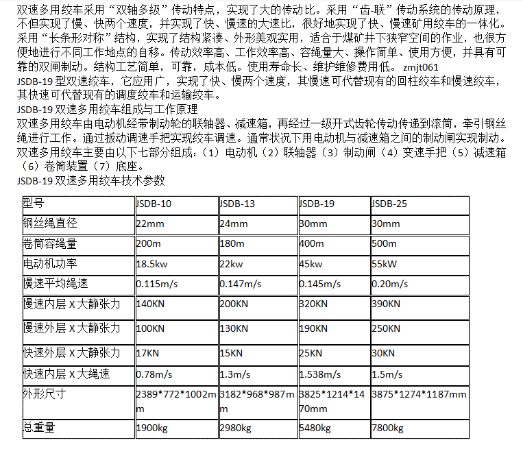 JSDB-19双速多用绞车巷道运输工作效率高容绳量大