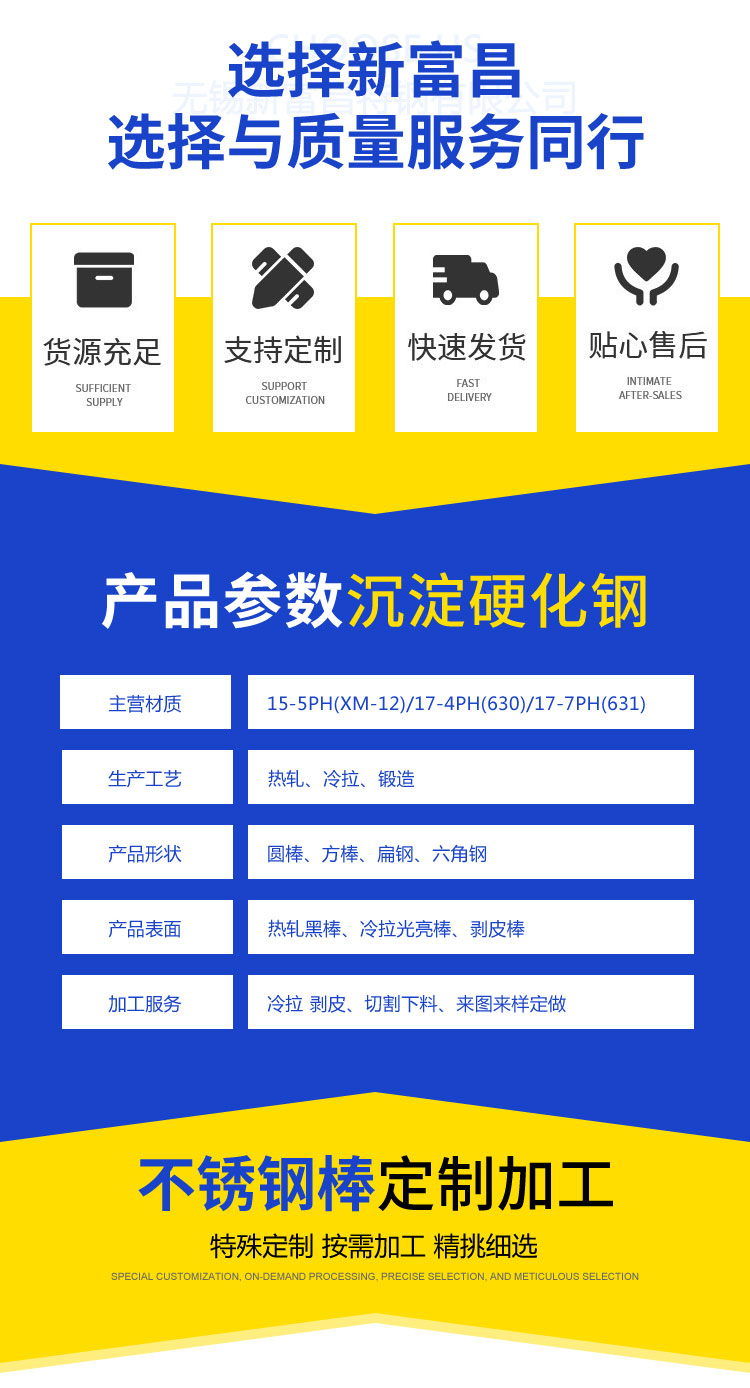 新富昌特钢SUS631不锈钢棒高强度高硬度航天航空领域用钢板