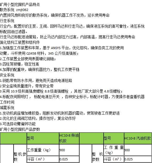 • 规格:矿用小型挖掘机定金