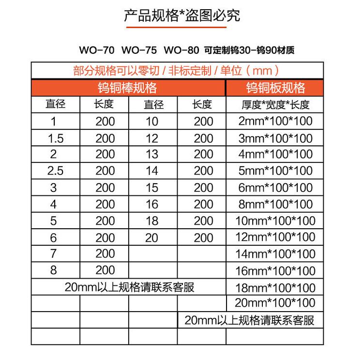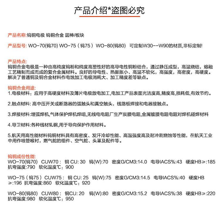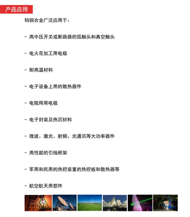 种类 | 钨铜棒 钨铜板 钨铜套 钨铜条 | ||