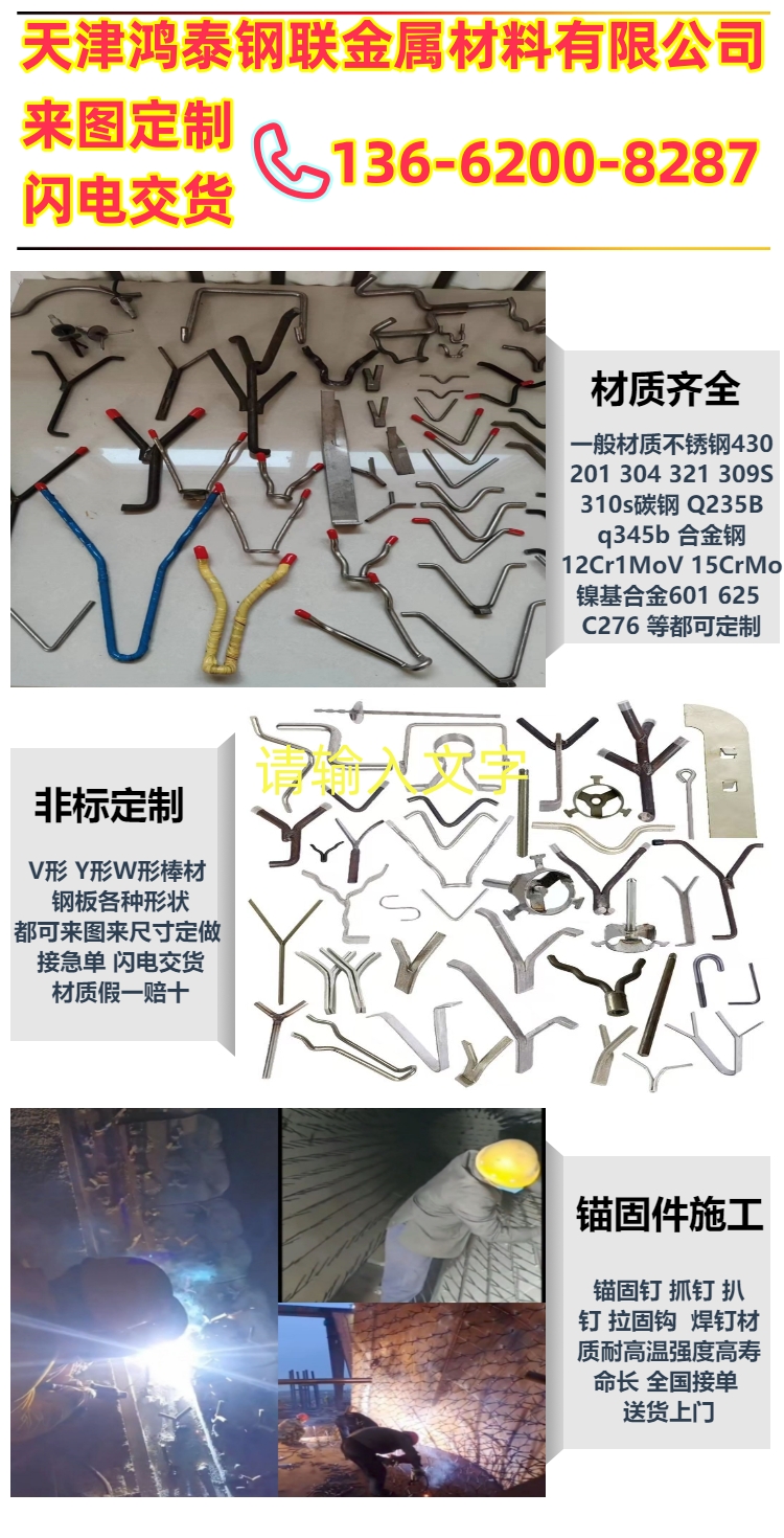 加工非标304不锈钢抓钉工业炉06cr19ni10锚固件Y型保温钉