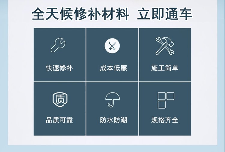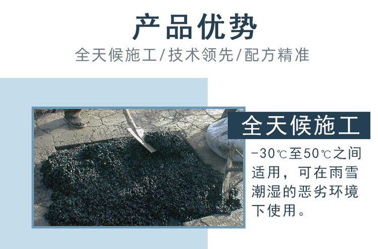 华通沥青冷补料与沥青路面、水泥混凝土路面、金属表面、木面等不同基质的材料均有良好的粘结力,可广泛应用于道路路面破损坑槽、地下管线铺设后的路面恢复、井盖周围、桥梁路面、停车场以及施工机械难以触及部位的修补与养护。华通沥青冷补料还具有很强的抗老化和粘结性能,修补的坑槽寿命在十年以上,并不易产生脱落、龟裂等不良现象,不需要重复修补。