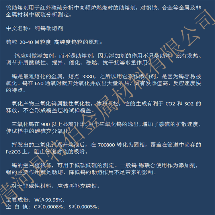 高纯钨粒钨助熔剂20-40目99.99碳硫分析钨颗粒