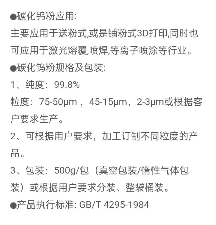 碳化钨粉3um高纯球形碳化钨超硬材料WC粉方东