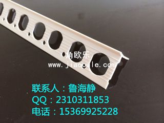 pvc室内外阴阳角护角条采用高强度的聚氯乙烯原料制造,耐腐蚀、抗冲击、防老化、耐侯性好,具有优良的机械、力学性能等。它的推广使用能有效地解决筑施工中长期存在着阳角不直、不美观,墙角易损坏等质量通病。 1.改变传统上用手工或借用简单工具去扇灰修整墙壁内外角的方法,使用过程中无需使用靠尺板,只需把pvc护角条先固定在用腻子抹平的墙角上,然后粉刷墙角,这样操作简便,简化施工程序。降低施工成本,几倍地提高施工效率。而且这样可以降低其对施工人员的技术要求,一般的施工人员就可以很好地把原先技术要求很高的工作做好。 2.防撞能力强,能防止施工人员在施工时候碰到墙角,产生缺口。有效地避免了因墙角碰坏而反复修补的麻烦。而且竣工后的建筑物在使用过程中,墙角的防撞能力得到大大的加强,一般的撞击不会产生缺口。这样就能省了许多售后服务工作。我们都知道装修好的房子如果要对墙角的缺口进行修补的话,极易产生色差。这样大大影响了室内的整体美观。而pvc护角条能很好的保护墙角受撞击后不产生缺口。 3.能解决室内阴阳角不直的问题。传统建筑工程中的边角都是采用水泥包沙角的手工施工方法,既费时又耗材,稍有不慎,极易造成垂直失准或墙面凹凸不平的情形发生。而pvc护角条能使阴阳角一直保持很直的效果。这样对施工人员的技术要求大大的降低了,一般的施工人员就能把墙角刷直。 4.还有就是pvc护角条可以与玻纤网格布覆合为一体,在内外保温上能有效地解决阳角不直、不平、易碰撞受损的通病。可以有效的增加墙角的抗冲击性,防止墙角开裂。使用保温网护角条将彻底解决以上所有的墙体质量问题和工程交工难的问题,确保保温砂浆层无龟裂,并且塑料条与玻纤网布粘结强度高,耐酸耐碱。使用本产品,还可提高防震级别,减轻地震灾害。