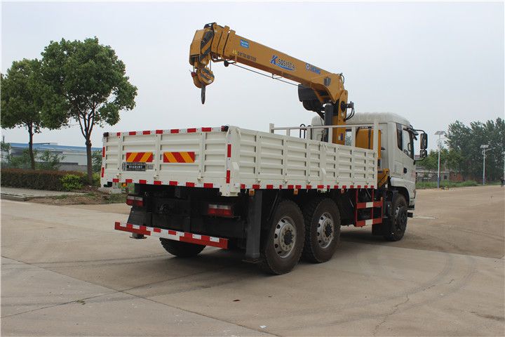 随底盘选装驾驶室.选装折臂式吊机.选用直臂吊机时,吊机型号/起升载荷(千克)/吊机重量(千克)为:sqs125/5000/2200,选用折臂吊机时,吊机型号/起升载荷(千克)/吊机重量(千克)为:sqz105/5000/2200,防护材料q235b,侧、后防护焊接连接,后部防护截面尺寸(宽×高)(mm) 50×120;离地高为500mm.该车安装具有卫星定位功能的行驶记录仪.abs型号为3631010-c2000,生产厂家为东科克诺尔商用车制动系统(十堰)公司.发动机与油耗值的对应关系为(l/100km): yc4eg185-50/28.6,isb190 50/28.4,isb220 50/28.4,isd245 50/29.0.
