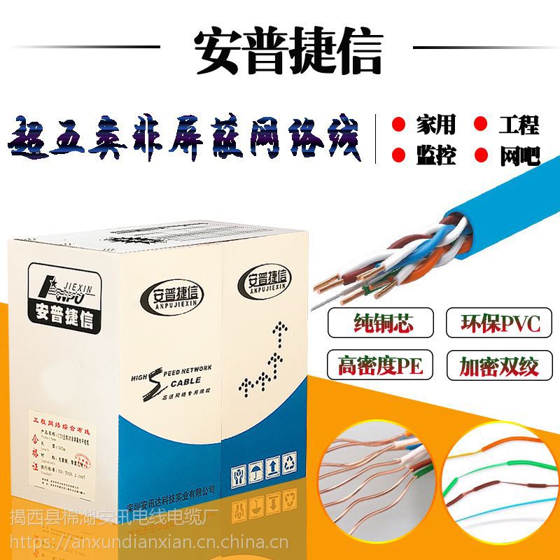 安普捷信 千兆纯铜超五类网络线电脑线监控线 cat5e 足300米 深圳安讯达科技实业有限公司 厂家
