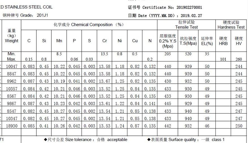 J1不锈钢是印度叫法,碳比201高一点,一般在0.08%左右,主要区别是J1含铜。达到1.5左右